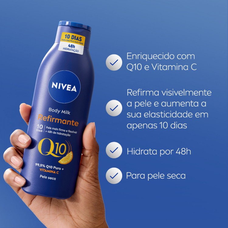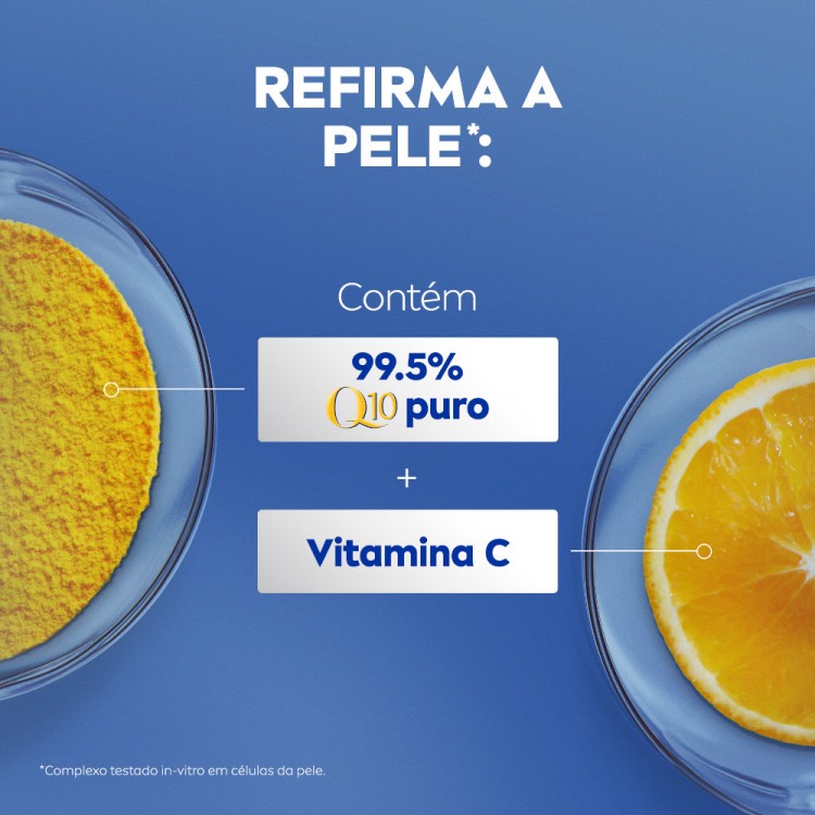 O leite corporal refirmante Q10, enriquecido com dois antioxidantes poderosos: Q10 e vitamina C, refirma e melhora visivelmente a elasticidade da pele em 10 dias. Vê e sente a diferença na tua pele seca!
