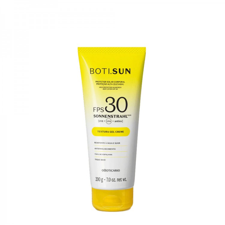 O Boti.Sun Protetor Solar Corporal é o teu novo aliado de proteção solar. Ajuda a prevenir queimaduras solares e vermelhidão, mantendo um toque seco na aplicação sem deixar a pele pegajosa. Com a tecnologia alemã exclusiva Sonnenstrahl, combina filtros solares e biopeptídeos para oferecer uma proteção multinível contra raios UVA E UVB, ação antioxidante e antipoluição.