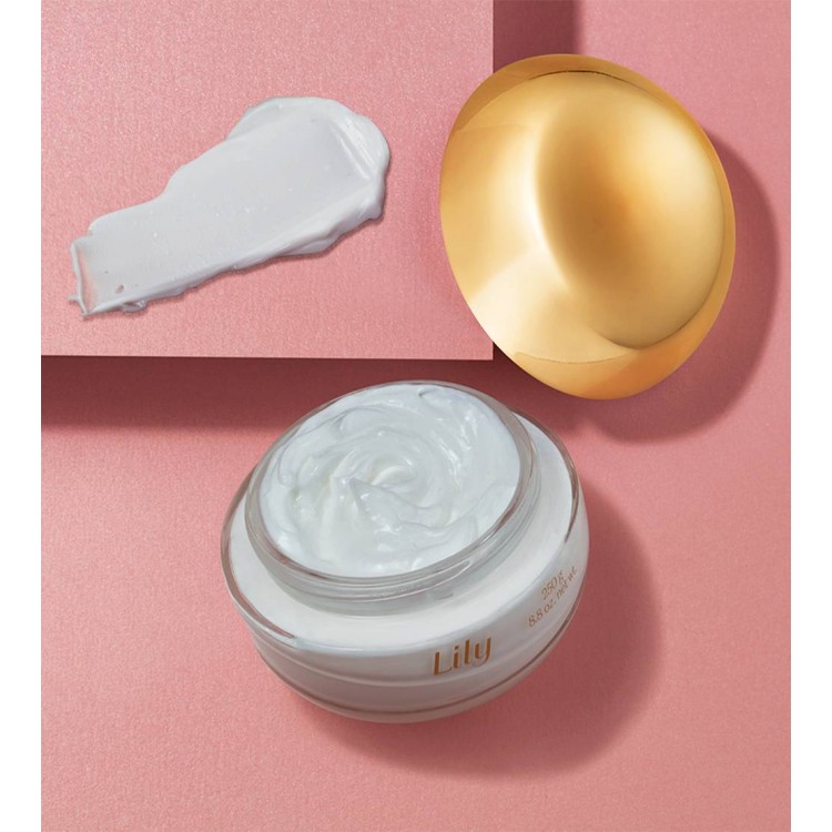 O Creme Acetinado Lily tem um toque aveludado, com uma textura especial, mais densa e um delicioso perfume marcante que dura o dia inteiro. O Creme hidratante tem a mesma fragrância elegante e rara do célebre Lily.