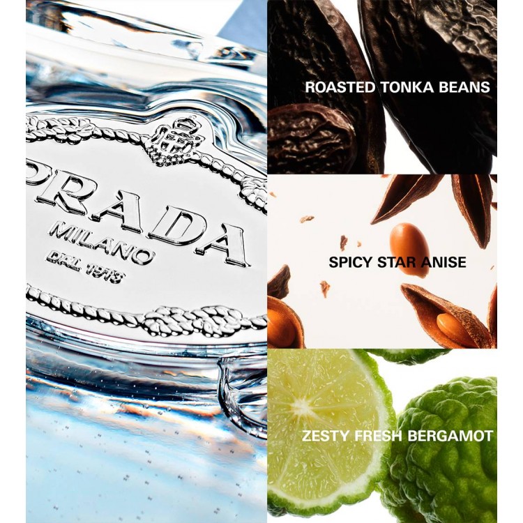 Cada uma das Infusions de Prada é uma interpretação poética de um ingrediente natural único e emblemático. Os aromas reinterpretam antigas técnicas de perfumaria e reinventam o natural em formas totalmente modernas, claras e precisas. A experiência é de déjà-vu olfativo com o passado que olha com ousadia para o futuro.