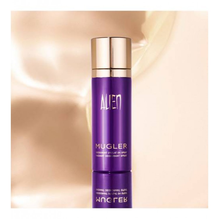A aura regenerativa de Alien Eau de Parfum pode agora ser experienciada com o radiante desodorizante em spray.