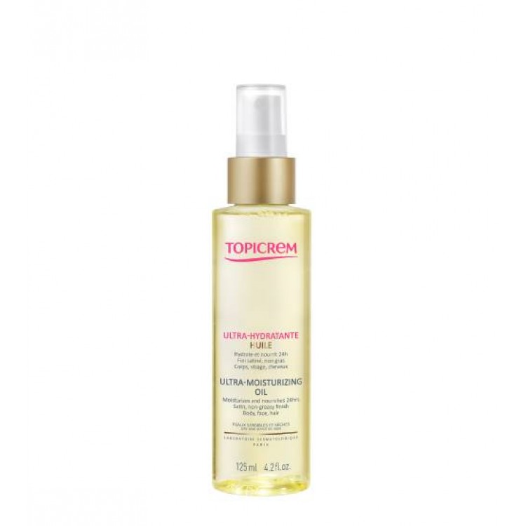 Descrição Topicrem Ultra-Hidratante Óleo, pode ser utilizado para corpo, rosto e cabelo.