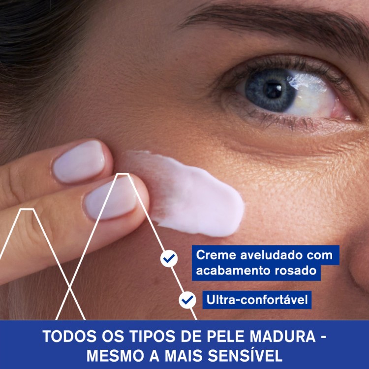 Este creme antienvelhecimento global foi formulado para a pele madura que sente perda de volume, contornos menos definidos e falta de luminosidade. A textura rosada aveludada proporciona conforto imediato e uma sensação de nutrição, ao mesmo tempo que devolve brilho natural e definição aos traços do rosto. É adequado para todos os tipos de pele madura, mesmo as mais sensíveis.