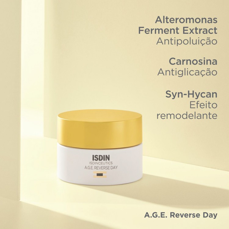 Como aplicar ISDIN Isdinceutics Age Reverse Day 50mlAplicar diretamente sobre a pela limpa e seca do rosto e pescoço até à sua absorção completa. Precauções: Uso externo. Manter fora do alcance das crianças. Evitar o contacto com os olhos e mucosas. Testado dermatológica e oftalmologicamente. Não sensibilizante.