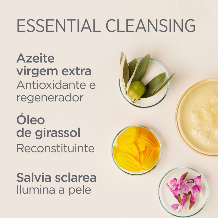Em contacto com água, transforma-se numa agradável emulsão que deixa a pele suave e hidratada. Limpa e elimina eficazmente o excesso de sebo, assim como maquilhagem e proteção solar resistente à água. Hidrata e respeita a barreira lipídica da pele. Promove um aspeto luminoso e radiante.