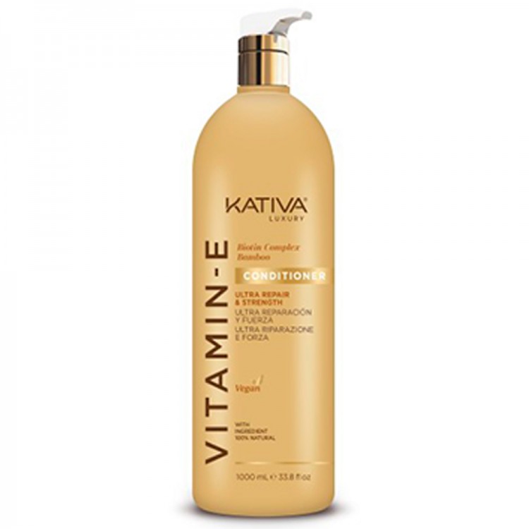 Kativa Vitamin-E Condicionador 1L: Com o passar dos anos, o stress e o sol fazem com que a pele e o cabelo percam as suas propriedades à medida que envelhecem.