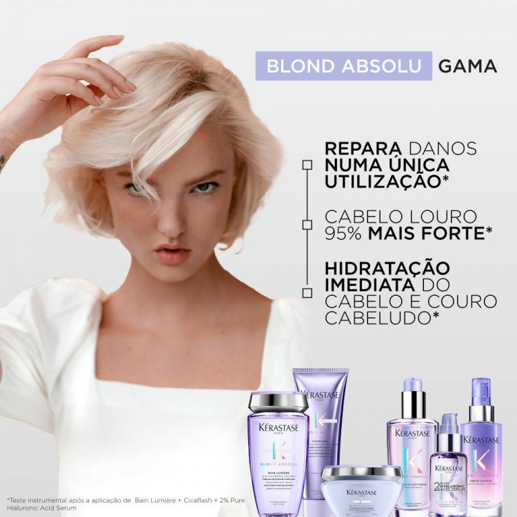 Kérastase Blond Absolu Fondant Cicaflash é um condicionador em gel leitoso opalescente com uma tonalidade suave de lavanda oferece o desempenho reparador de uma máscara com o acabamento leve de um condicionador.