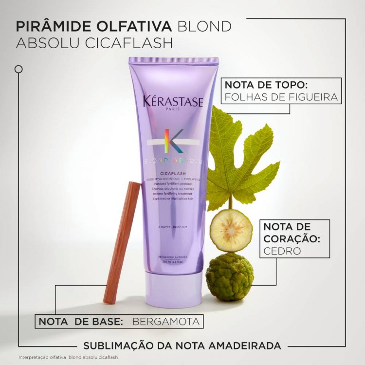 Cicaflash é um condicionador em gel leitoso opalescente com uma tonalidade suave de lavanda oferece o desempenho reparador de uma máscara com o acabamento leve de um condicionador. Repara intensivamente o cabelo sensibilizado, nutrindo a fibra. A combinação de Ácido Hialurónico com flor de Edelvaisse suaviza e fortalece instantaneamente o cabelo aclarado sensibilizado enquanto o nutre em profundidade. Ideal para todos os cabelos aclarados ou com descoloração, Cicaflash repara a fibra capilar, prevenindo a quebra e a erosão. O cabelo fica suave e hidratado sem perder a sua leveza e luminosidade.
