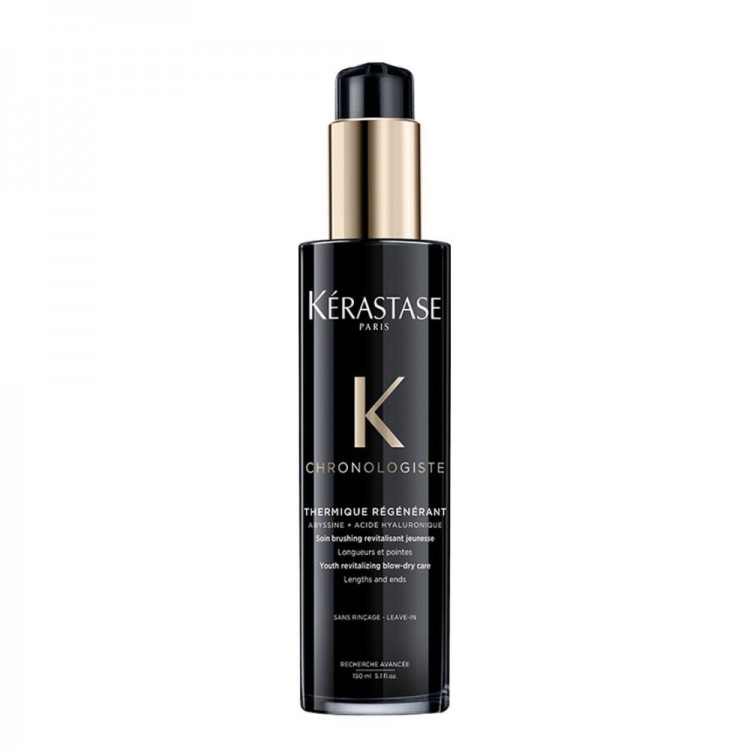 Kérastase Chronologiste Thermique Régénérant é um termoprotetor regenerador para revitalizar e suavizar a textura da fibra de cabelo. Enriquecido com Ácido Hialurónico, Abyssine e Vitamina E para combater os sinais de envelhecimento do cabelo.
