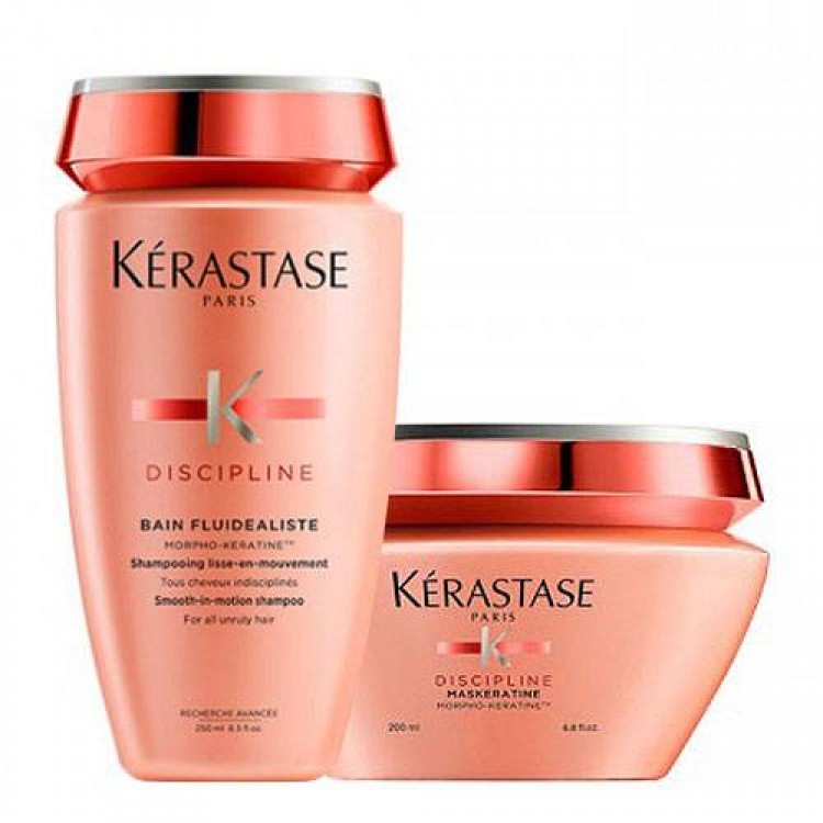Conjunto de produtos que proporciona disciplina, suavidade, brilho e efeito anti-frizz ao cabelo.