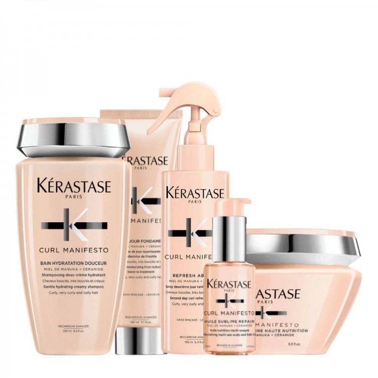 Kérastase Curl Manifesto Bain Hydratation Douceur 250ml + Masque Beurre Haute Nutrition 200ml + Crème De Jour Fondamentale 150ml + Huile Sublime Repair 50ml + Refresh Absolu 190ml