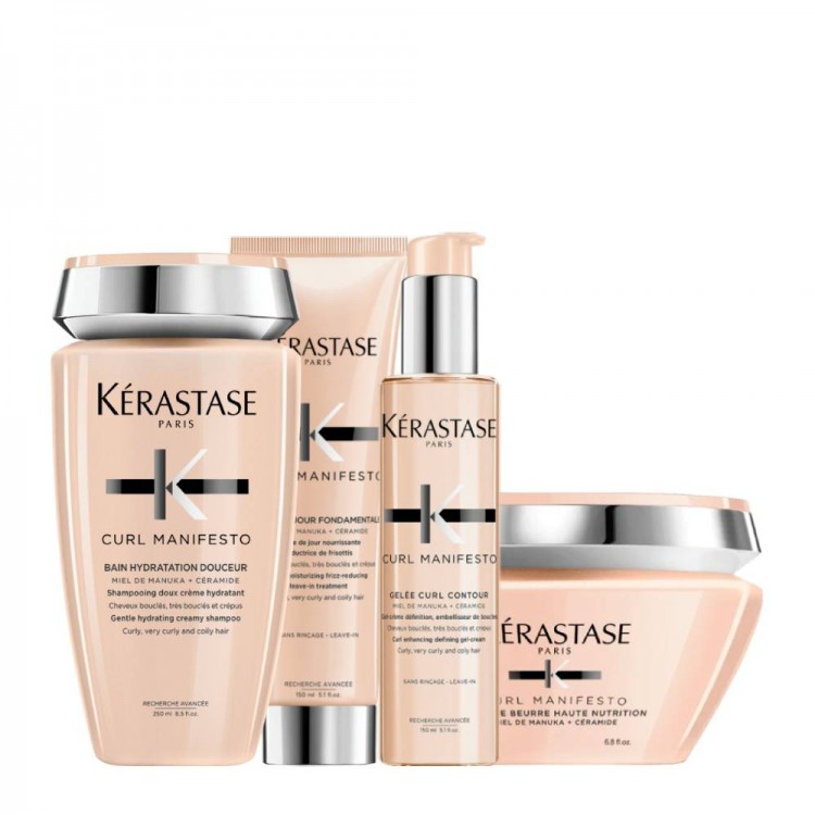 Kérastase Curl Manifesto Bain Hydratation Douceur 250ml + Masque Beurre Haute Nutrition 200ml + Crème De Jour Fondamentale 150ml + Gelée Curl Contour 150ml