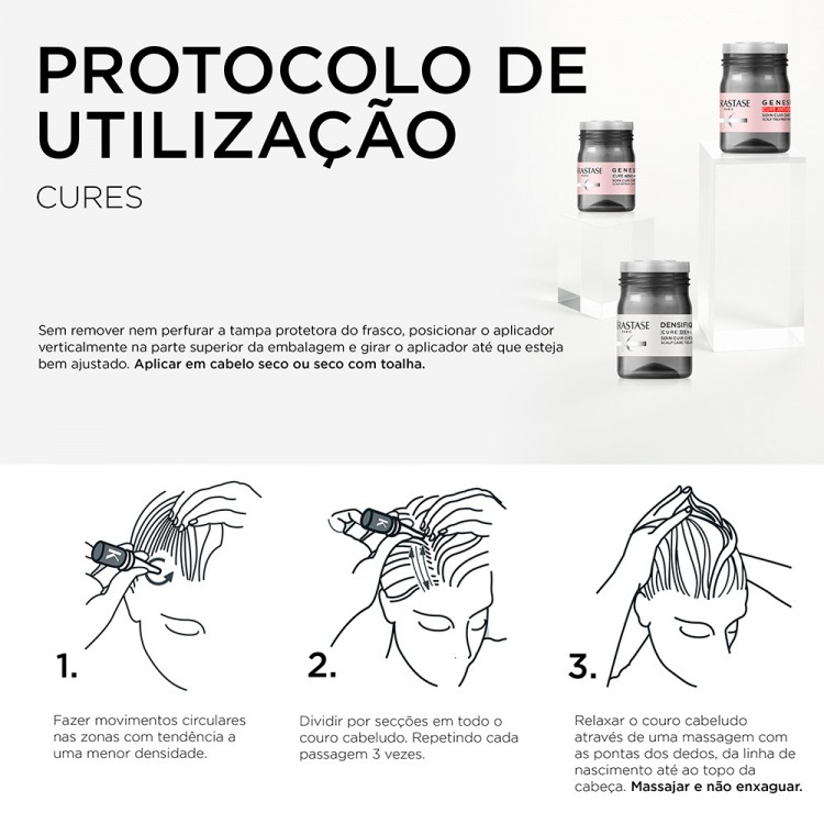 Aplicar uma ampola por dia durante 4 semanas diretamente no couro cabeludo limpo e seco. Massajar suavemente para facilitar a absorção. Não passar por água.