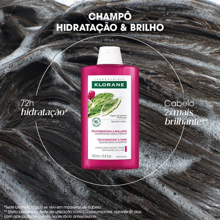 Este shampoo com figo da índia hidrata durante 72 horas e devolve o brilho ao cabelo desidratado e baço. A sua fórmula composta por 97% de ingredientes de origem natural, entrega ao cabelo uma hidratação de longa duração, através das suas propriedades hidratantes superiores às da glicerina, devido às suas moléculas hidro fixadoras. Cria uma espuma delicada e altamente sensorial, que devolverá o brilho ao teu cabelo sem o pesar.