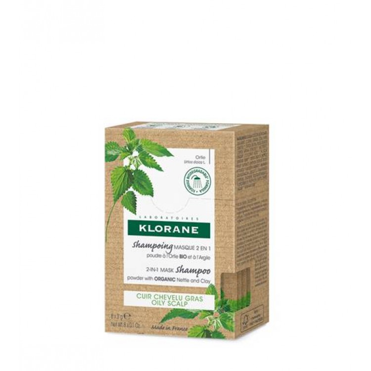 Klorane ortiga bio shampoo-máscara é um cuidado inovador com urtiga orgânica e argila absorvente, que permite purificar o couro cabeludo oleoso sem agredi-lo e assim espaçar a utilização dos shampoos.