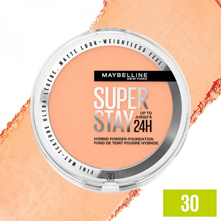 Obtém um aspeto mate suave com a base em pó Supertay Híbrido. Até 24 horas de supercobertura mate e textura superleve.