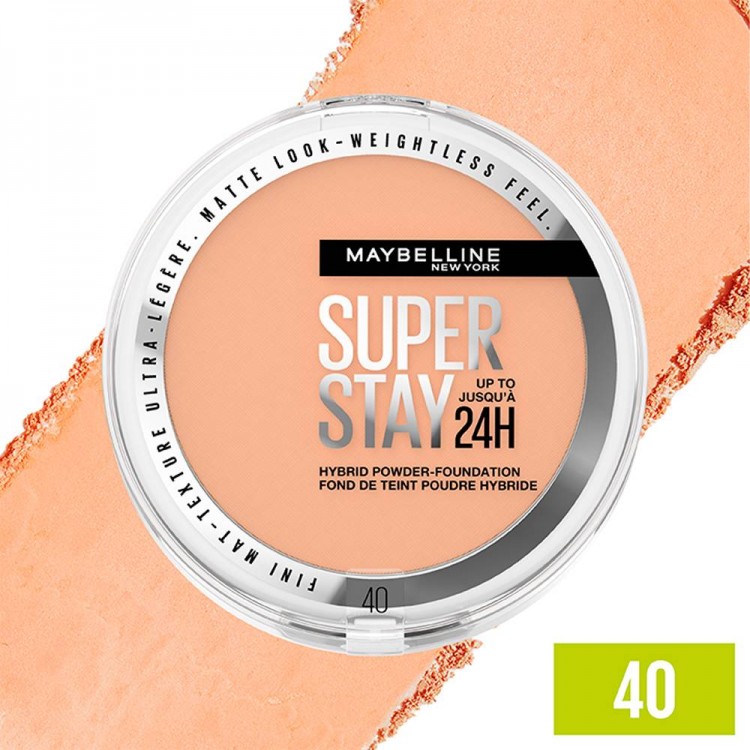Obtém um aspeto mate suave com a base em pó Supertay Híbrido. Até 24 horas de supercobertura mate e textura superleve.
