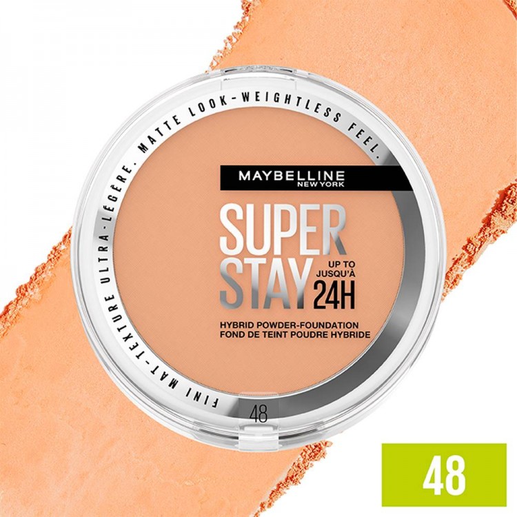 Obtém um aspeto mate suave com a base em pó Supertay Híbrido. Até 24 horas de supercobertura mate e textura superleve.