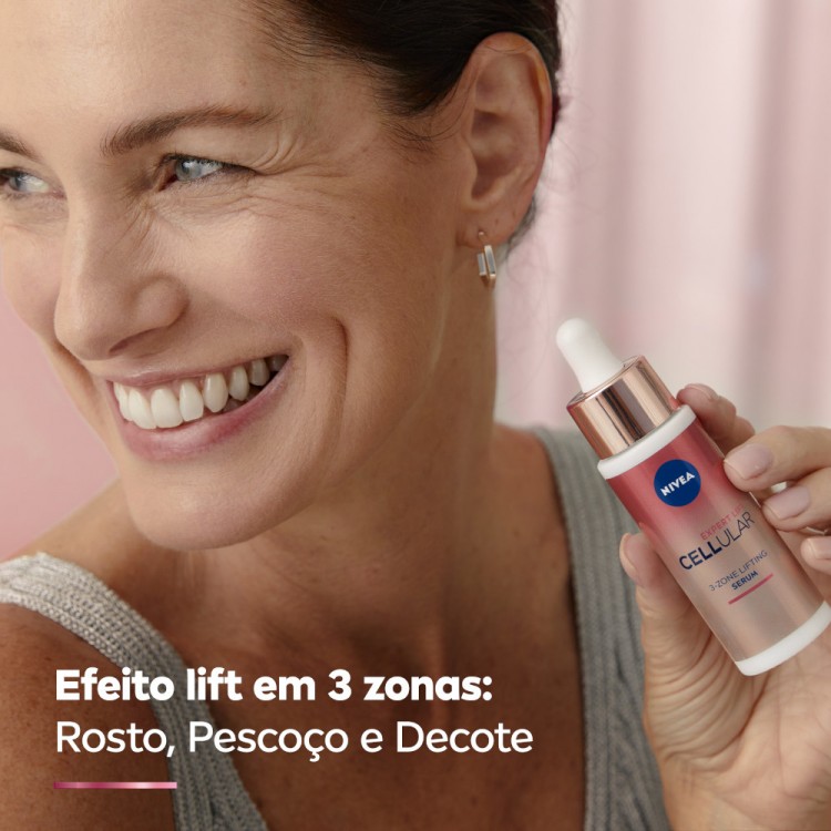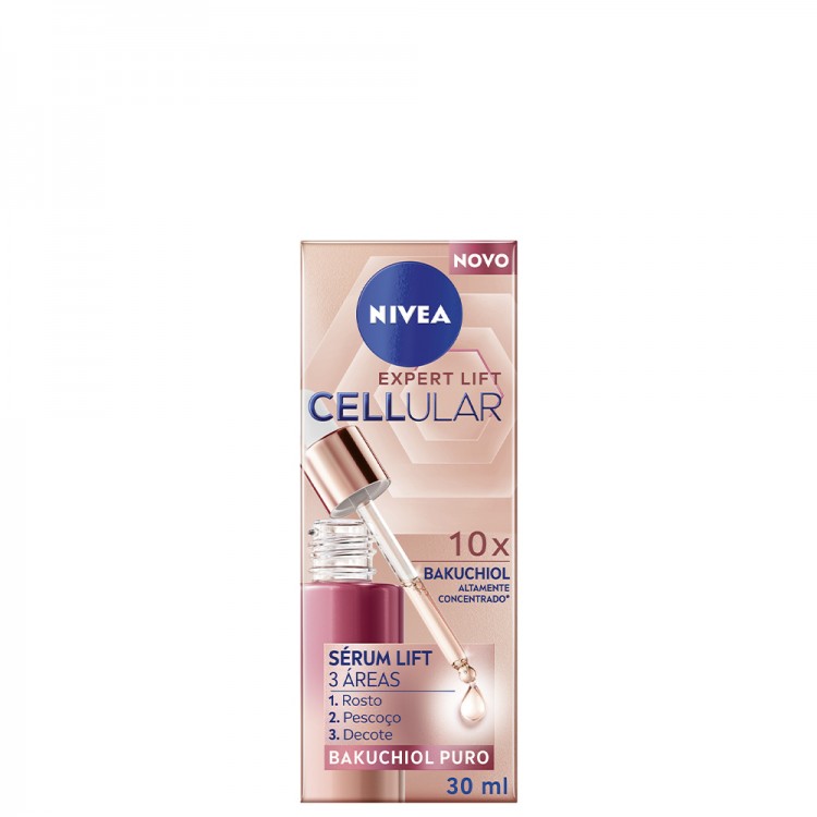 DescriçãoO Sérum 3 Zonas atua em profundidade a nível celular para um efeito lift em 3 zonas: rosto, pescoço e decote. Potenciado com 10x Bakuchiol Puro vs Bakuchiol utilizado nos produtos NIVEA CELLULAR EXPERT LIFT.
