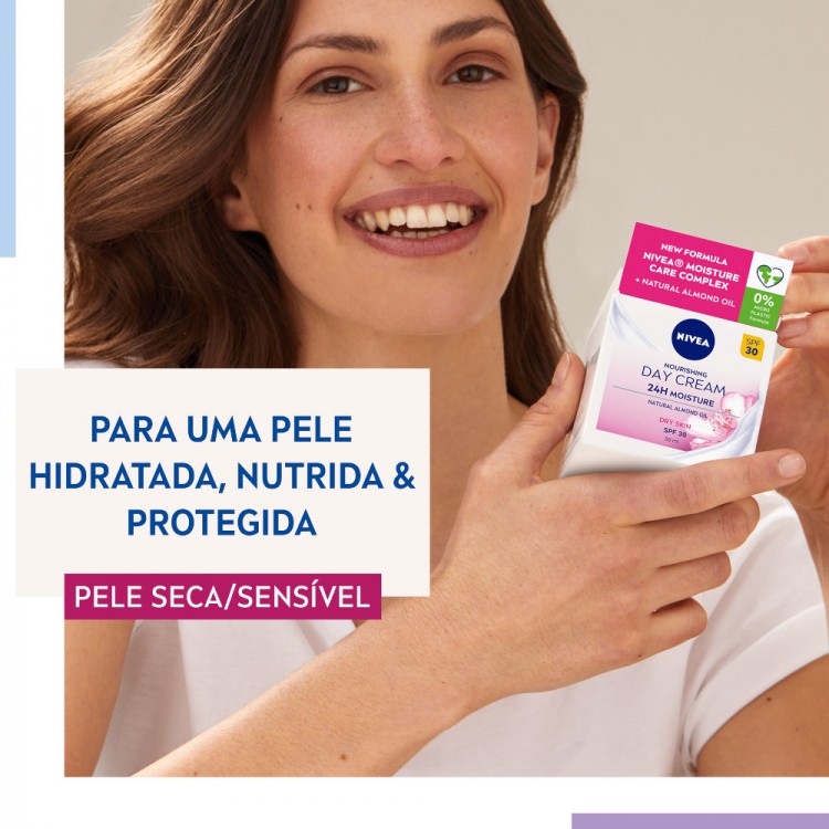 O creme de dia para pele seca e sensível hidrata intensamente até 24 horas, equilibrando o nível de hidratação da própria pele. Com SPF15, este creme protege contra influências dos raios solares.