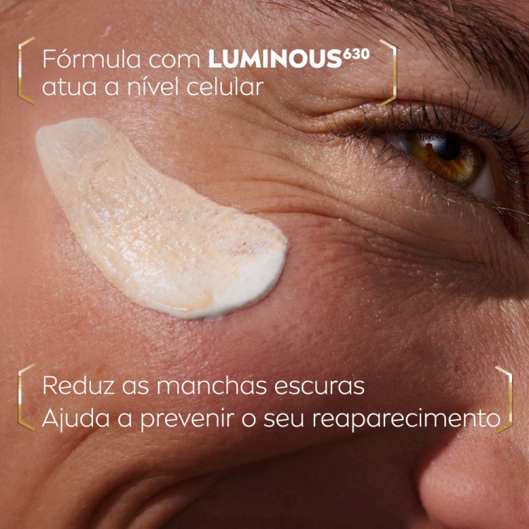 O CC Fluido Antimanchas Luminous 630 cobre, reduz e protege as manchas escuras - resultados visíveis em 2 semanas. Com pigmentos que se adaptam ao tom de pele. Para uma pele uniforme e luminosa, de aspeto radiante.