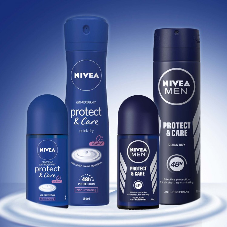 O roll-on Protect & Care é um desodorizante com todo o cuidado Nivea, que combina uma proteção eficaz durante 48h, com os ingredientes e um cheirinho único do Nivea Creme. O cheirinho é familiar a todos e provoca um sentimento real de cuidado e frescura durante todo o dia. É particularmente suave, não causa irritações e é bem tolerado pela pele delicada das axilas.