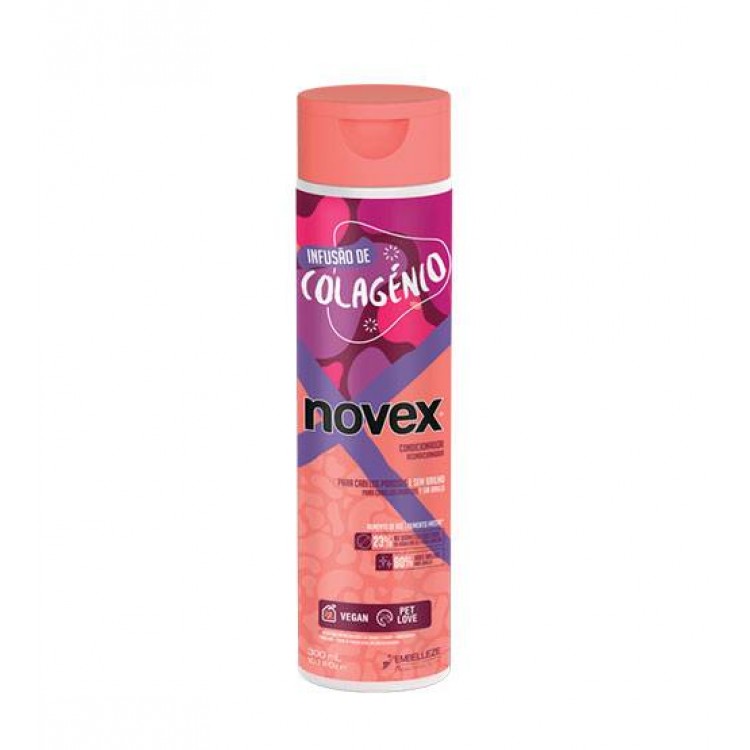 O Condicionador Novex Infusão de Colagénio contém 100% de colagénio vegetal, conhecido por suas propriedades antienvelhecimento. Extraído da Acácia Senegal, uma planta típica da África, o colagénio é uma proteína produzida a partir de aminoácidos.