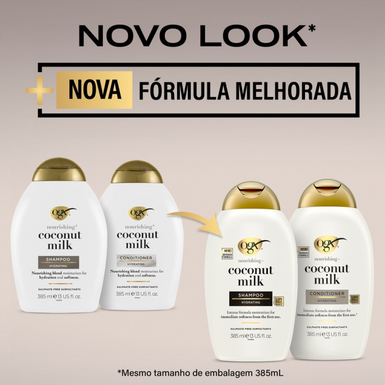 DescriçãoO condicionador OGX Leite de Coco hidrata e nutre intensamente cabelos secos e danificados, proporcionando suavidade e brilho imediatos. A sua fórmula rica, sem sulfatos surfactantes, deixa o cabelo visivelmente mais saudável desde a primeira aplicação.