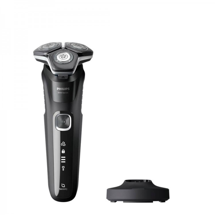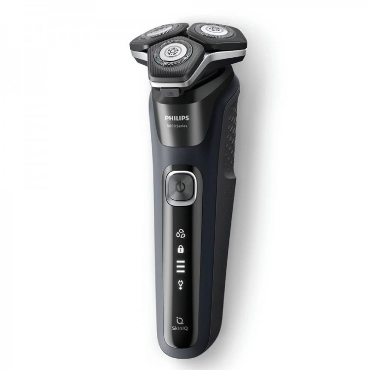 A máquina de barbear Series 5000 proporciona um barbear cuidado e confortável, através das suas cabeças totalmente flexíveis, que rodam a 360° para seguir os contornos faciais.