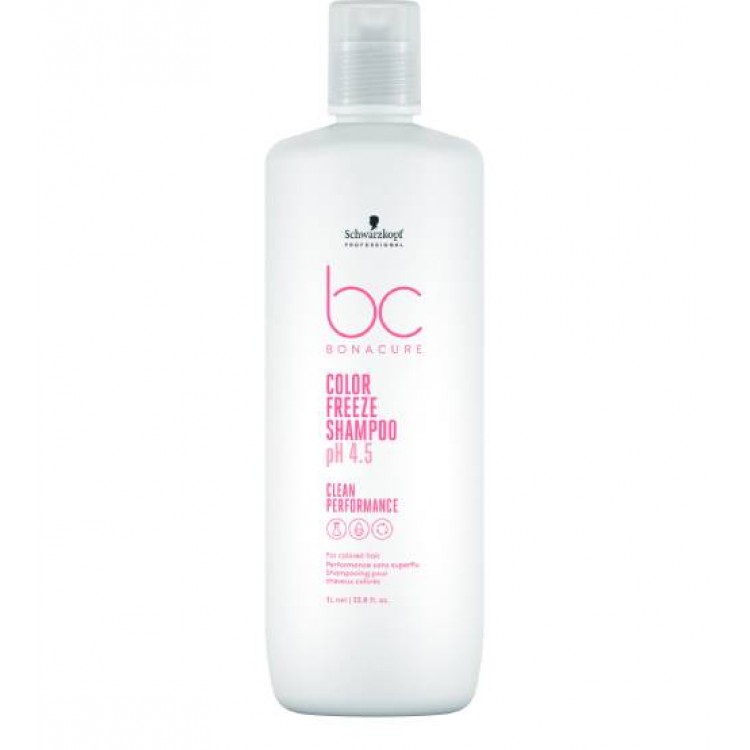 Schwarzkopf BC Color Freeze Shampoo suave para cabelo com coloração que traz o cabelo ao seu pH ideal de 4.5 para fixar perfeitamente os pigmentos de cor. Para uma coloração intensa e duradoura. Ideal para usar após um serviço de coloração e manutenção em