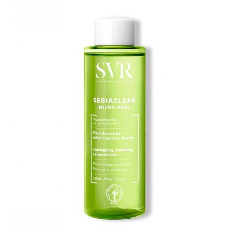 SEBIACLEAR MICRO-PEEL é um produto inovador, uma água de tratamento anti-imperfeições que suaviza a pele ao mesmo tempo que desobstrui os poros, formulado com 90% de ingredientes naturais e concentrado em ativos eficazes: um par de ácidos: ácido lactobiónico, um polihidroxiácido ou PHA, um ingrediente de nova geração que é tão eficaz quanto um AHA mas bastante melhor tolerado devido ao seu elevado peso molecular, que o impede de penetrar profundamente na pele. Em conjunto com o ácido salicílico refina e suaviza a textura da pele, e reduz e limita o reaparecimento de novas imperfeições. Indicado para a pele sensível, mista a oleosa, com tendência a acneica. Poros, borbulhas e pontos negros. Rosto, adulto.