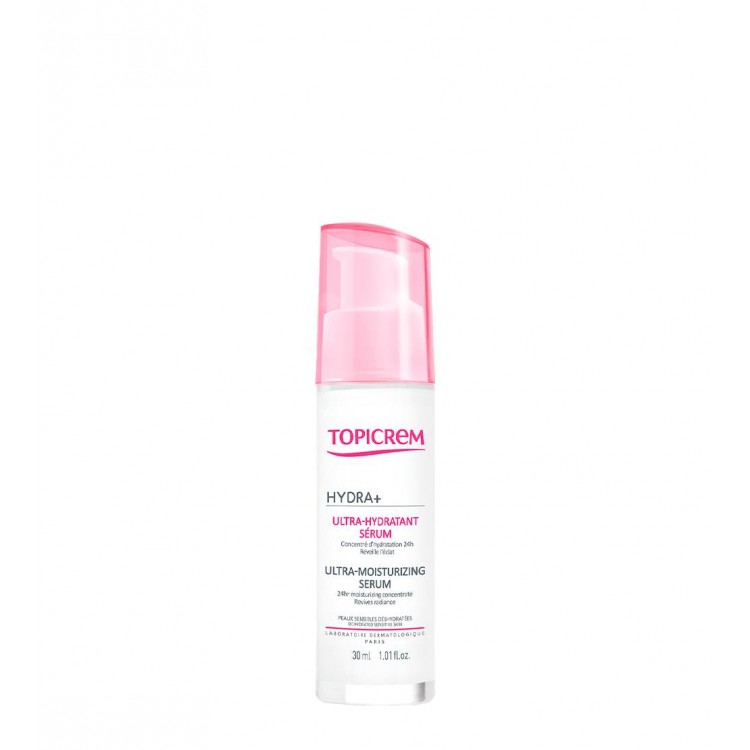 DescriçãoTopicrem HYDRA+ Sérum Ultra-Hidratante é um sérum concentrado de hidratação, revelador de luminosidade, indicado para peles desidratadas e baças. Hidrata profundamente e revela a luminosidade das peles sensíveis. Booster de hidratação. Hidratação prolongada 24h. Ação antipoluição. Textura evanescente ultra fluida. Sensação de frescura. Penetração instantânea. Perfume delicado.