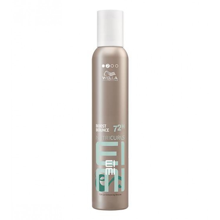 Wella EIMI Nutricurls 72h Boost Bounce é uma espuma realce de caracóis 72h. Reforça os caracóis com volume, brilho extra, definição e um cabelo menos frisado. Nível de fixação 2.