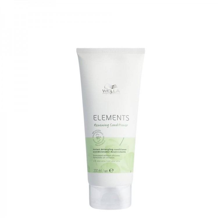 O condicionador renovador Elements é um condicionador hidratante especificamente formulado sem silicones e com 95% de ingredientes de origem natural.