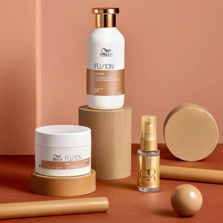 Wella Fusion Coffret: Wella Fusion Shampoo 250ml + Wella Fusion Máscara 150ml + Wella Oil Reflections Luminous Smoothening Oil 30ml
