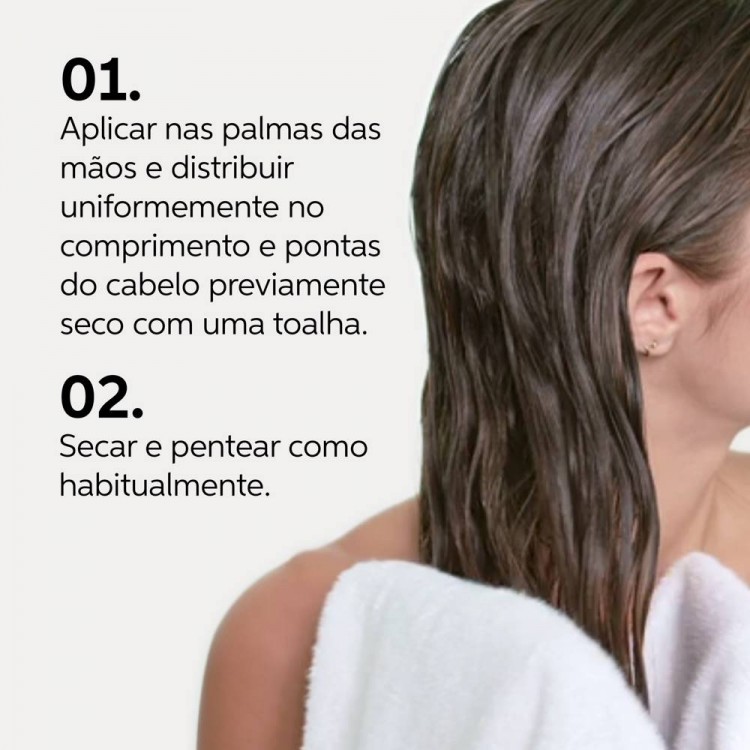 BenefíciosA sua fórmula rica e nutritiva sem passar por água funde-se no cabelo, penetrando nas fibras capilares para uma nutrição em profundidade.