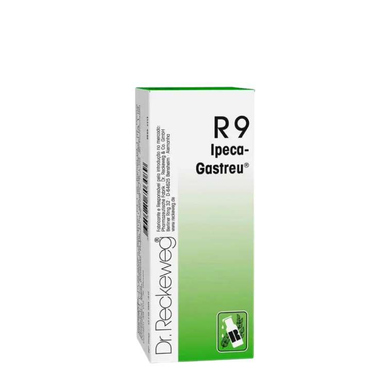 Dr. Reckeweg R9 baseia-se nas utilizações tradicionais de cada um dos componentes homeopáticos. Entre elas incluem-se: tosse seca, coriza seca, traqueite, laringite, afecções peitorais.