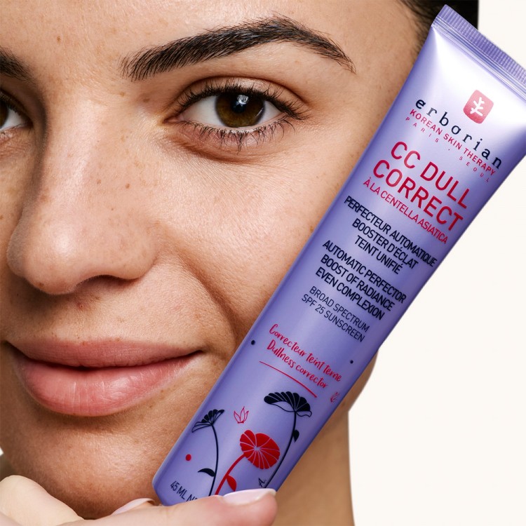 O CC Dull Correct da Erborian é um cuidado iluminador multifuncional que ajuda a restaurar a luminosidade da pele, graças aos seus pigmentos violetas que camuflam e às pérolas minerais que deixam um acabamento radiante. Além disso, uniformiza o tom da pele e disfarça imperfeições com os seus pigmentos encapsulados. A pele opaca pode ser intensificada por agressões diárias, como poluição, radiação solar, stress ou um estilo de vida agitado. Enriquecido com extrato de alcaçuz, que possui propriedades iluminadoras e antioxidantes, e com centella asiática, que suaviza e hidrata, este CC creme realça a luminosidade da pele e combate os radicais livres.