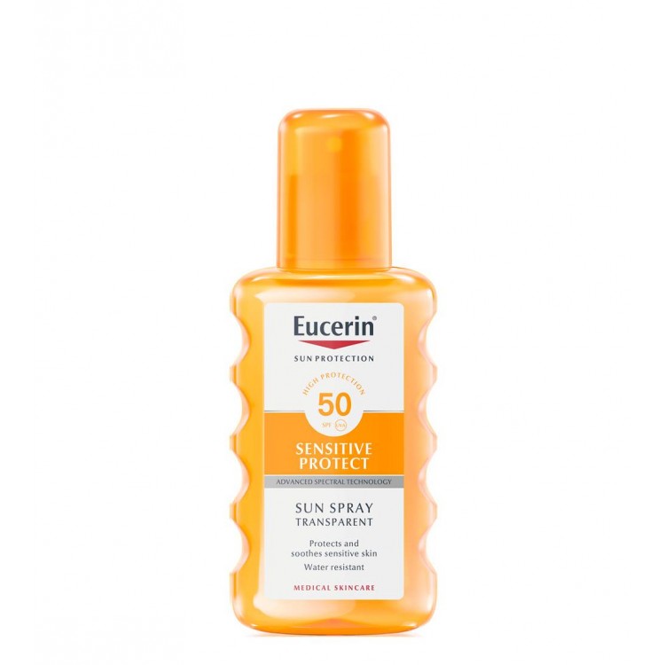 Como aplicar Eucerin Sensitive Protect Spray Solar Transparente SPF50 200mlAplique generosamente antes da exposição solar e torne a aplicar com frequência, especialmente após nadar, usar a toalha e transpirar, para manter a proteção original. A quantidade insuficiente de protetor solar aplicado reduz o efeito de proteção.
