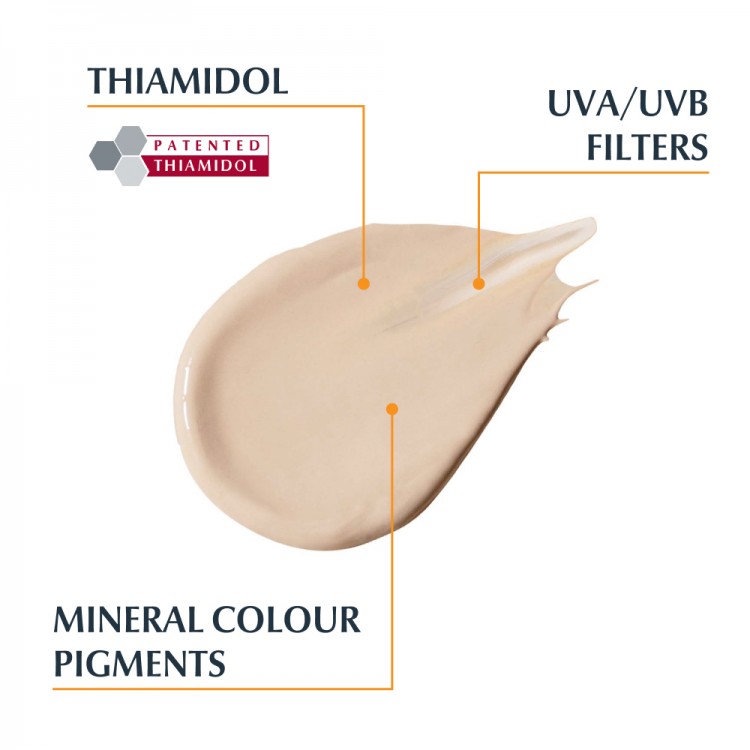 A fórmula com o Thiamidol® patenteado reduz manchas de pigmentação e previne o seu reaparecimento atuando na sua origem. O Ácido Glicirretínico contribui para o próprio mecanismo de reparação do ADN da pele.