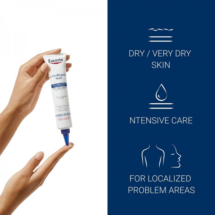 Como aplicar Eucerin Urea Repair Plus 30% Ureia Creme Extremely Dry Spots 75mlMassage com o creme, nas zonas mais afetadas até totalmente absorvido.