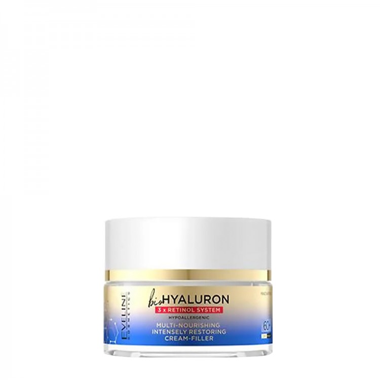 O retinol triplo e as 6 formas de ácido hialurónico são a fórmula extremamente eficaz que inibe os processos de envelhecimento da pele.