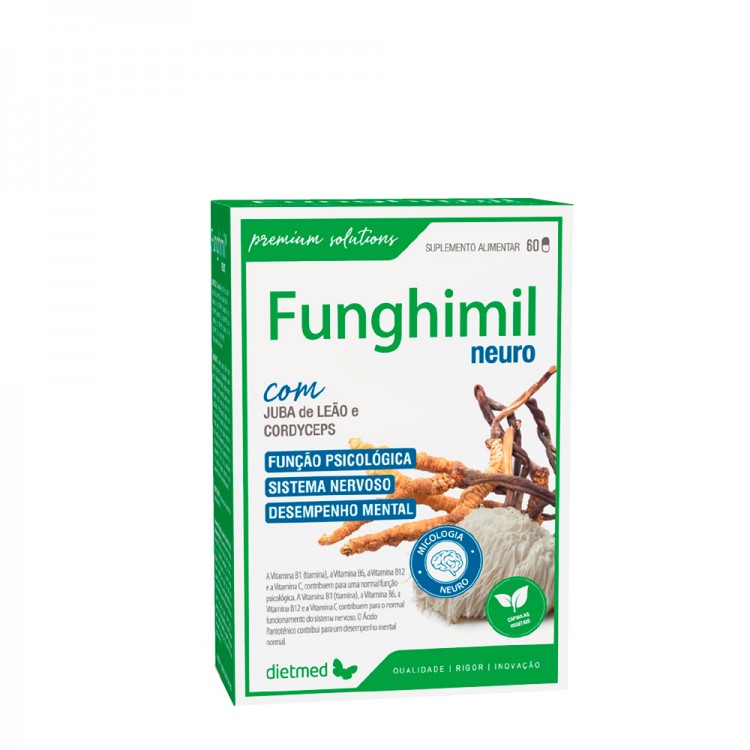 Funghimil Neuro é um suplemento avançado que apoia a saúde mental e o funcionamento do sistema nervoso. Formulado com Vitaminas B1, B6, B12 e Vitamina C, promove uma função psicológica equilibrada.