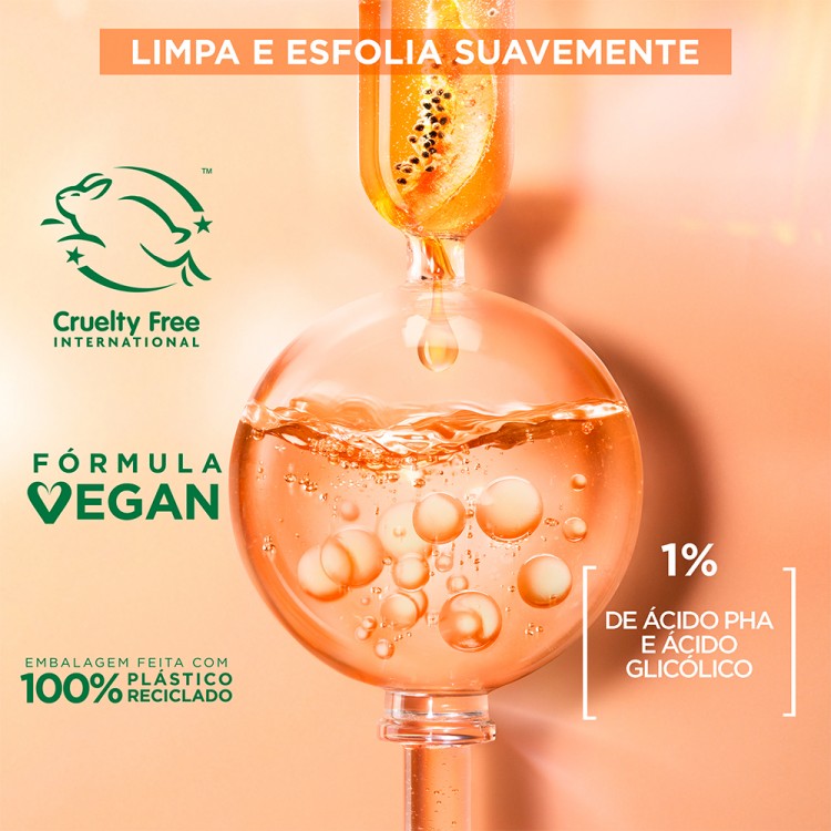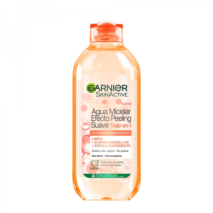 Garnier Água Micelar Peeling Suave de Ácido Glicólico é a forma mais fácil e eficaz de desmaquilhar, limpar e esfoliar o rosto num único gesto.