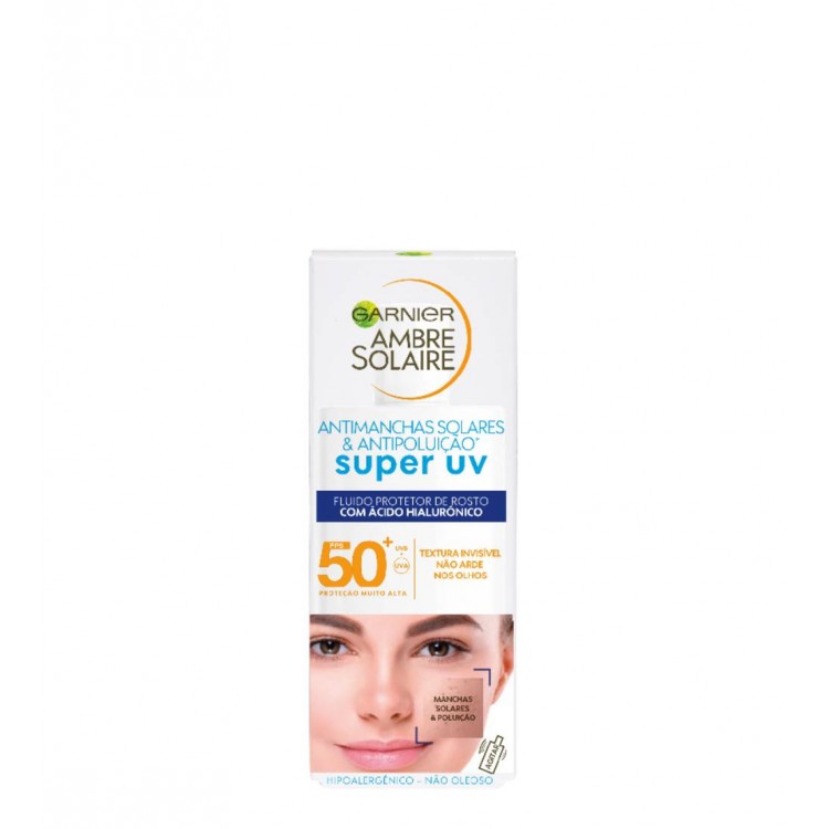 Garnier Ambre Solaire Creme Rosto Antimanchas Solares & Antipoluição SPF50+ Creme para o rosto de proteção muito alta reforçada contra os UVB e os UVA, adaptada a pele clara, sensível e intolerante ao sol.