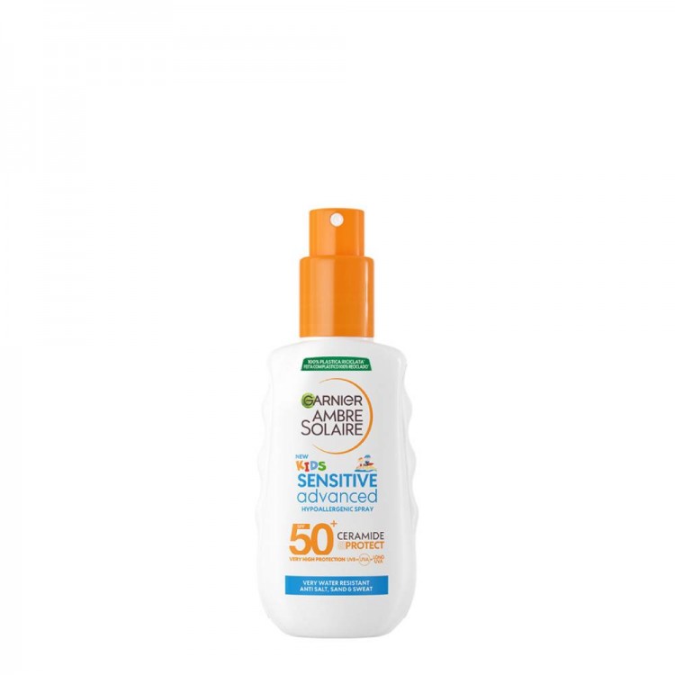 Garnier Ambre Solaire Spray Sensitive Advanced Kids SPF50+ 150ml: Spray de proteção muito alta reforçada contra os UVB e os UVA, adaptada a pele clara, sensível e intolerante ao Sol. Constituído por uma fórmula hidratante e muito resistente à água. Formu