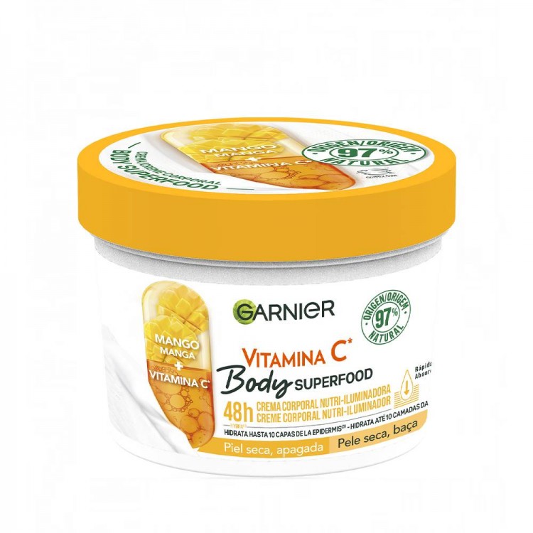 DescriçãoO creme corporal Body Superfood, formulado com manga e vitamina C, é um hidratante nutri-iluminador, ideal para pele seca, sem brilho.