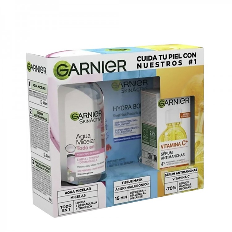 Garnier Água Micelar Tudo em 1 400ml + Hydra Bomb Máscara + Vitamina C Sérum Antimanchas 30ml