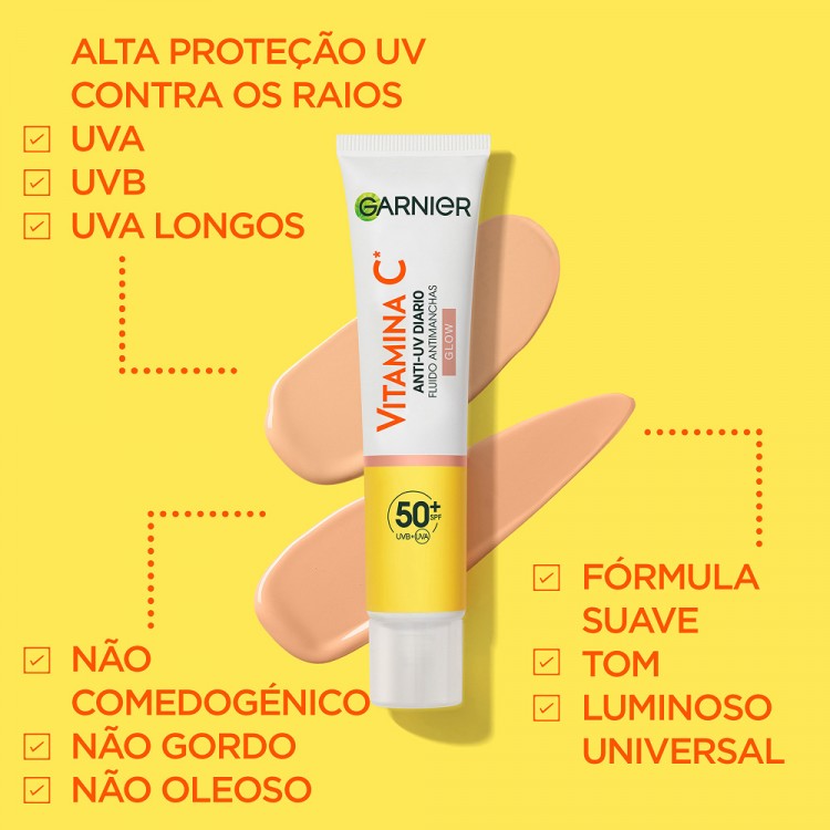 Garnier Skin Active Vitamina C* Fluido Antimanchas Iluminador 40ml: O poder iluminador da Vitamina C* para reduzir manchas escuras.