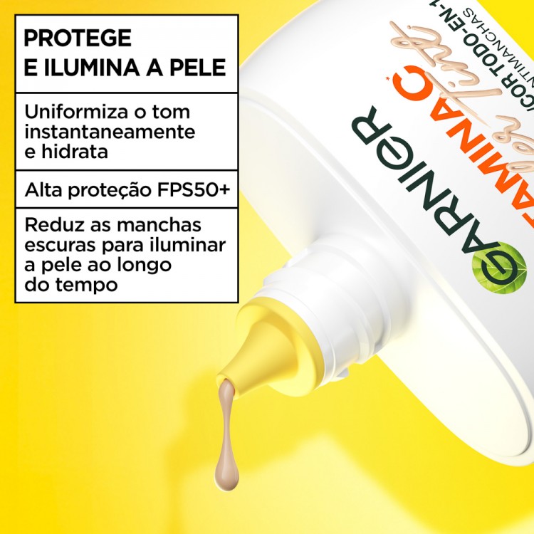 com Vitamina C, ajuda a iluminar o tom da pele e a reduzir manchas,
